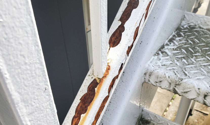 手すりや雨樋の金具、庇(ひさし)など、金属部分に赤茶色のサビが出ていないかチェックしましょう。