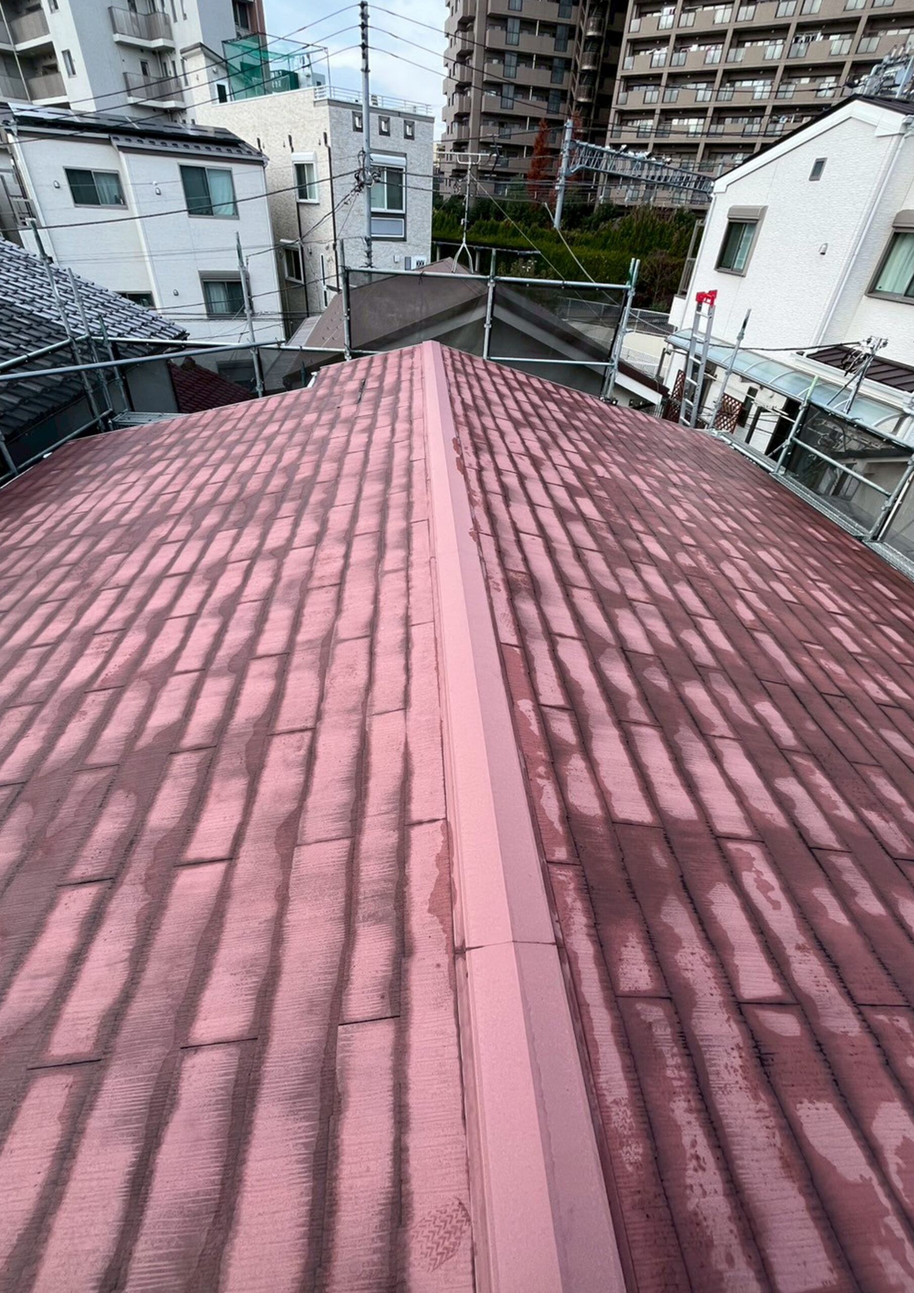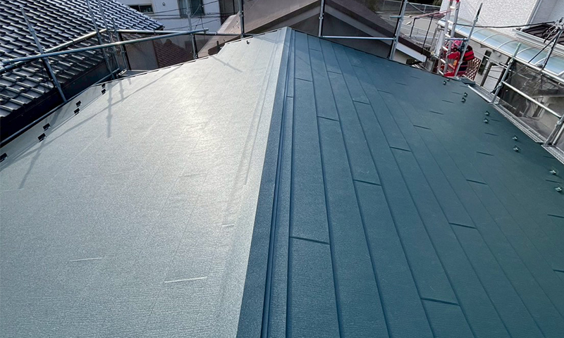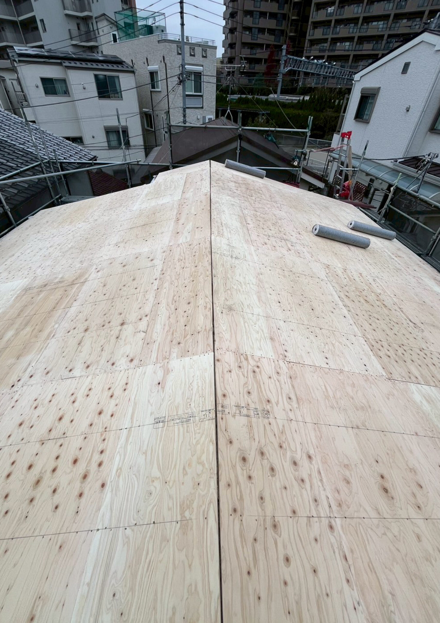 屋根の葺き替え 東京都杉並区 屋根葺き替え工事施工事例 施工前 施工後 既存屋根 既存屋根撤去 野地板張り 防水シート貼り 完了 施工詳細 エリア東京都杉並区 工期6日 費用120万円 使用屋根材IG工業 スーパーガルテクト 工事名屋根葺き替え工事 東京都荒川区 店舗外壁塗装 施工事例